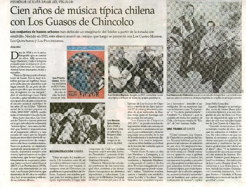 Cien años de música típica Chilena con Los Guasos de Chincolco [artículo] Iñigo Díaz