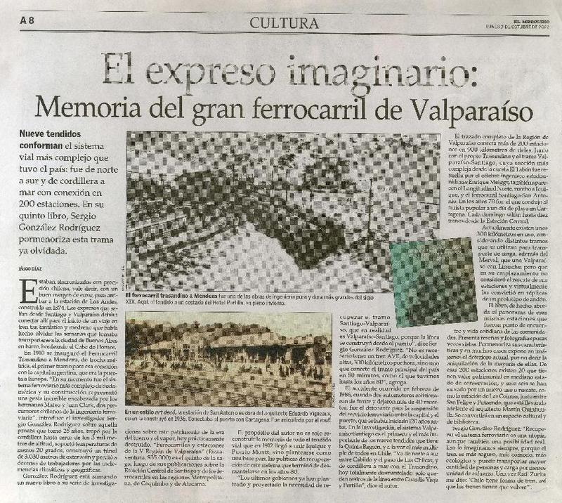 El expreso imaginario, memoria del gran ferrocarril de Valparaíso [artículo] Iñigo Díaz.