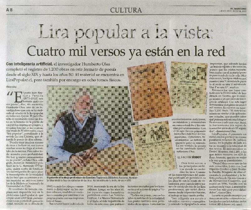 Lira popular a la vista : cuatro mil versos ya están en la red [artículo] Inigo Díaz.