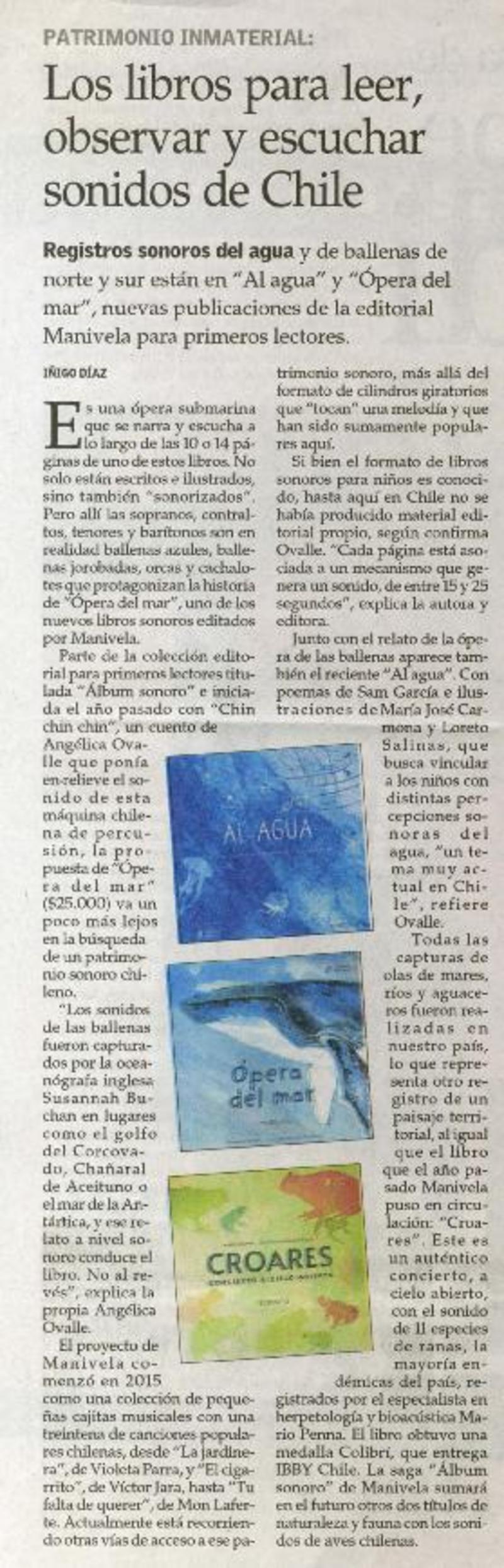 Los libros para leer, observar y escuchar sonidos de Chile [artículo] Iñigo, Diaz.