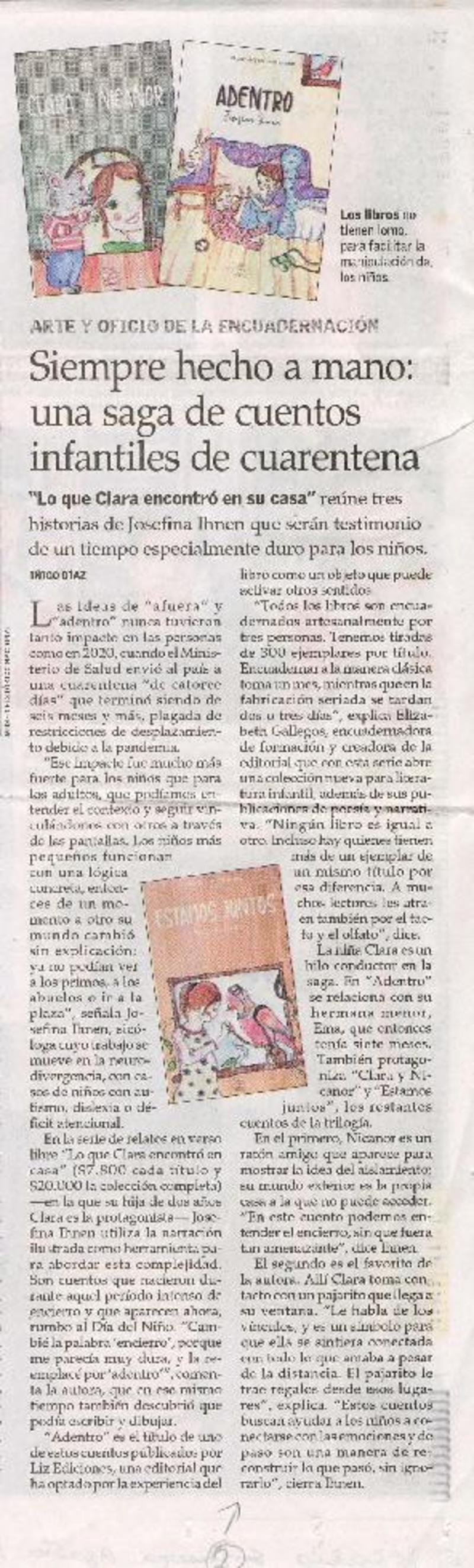 Siempre echo a mano, una saga de cuentos infantiles de cuarentena [artículo] Iñigo Díaz.