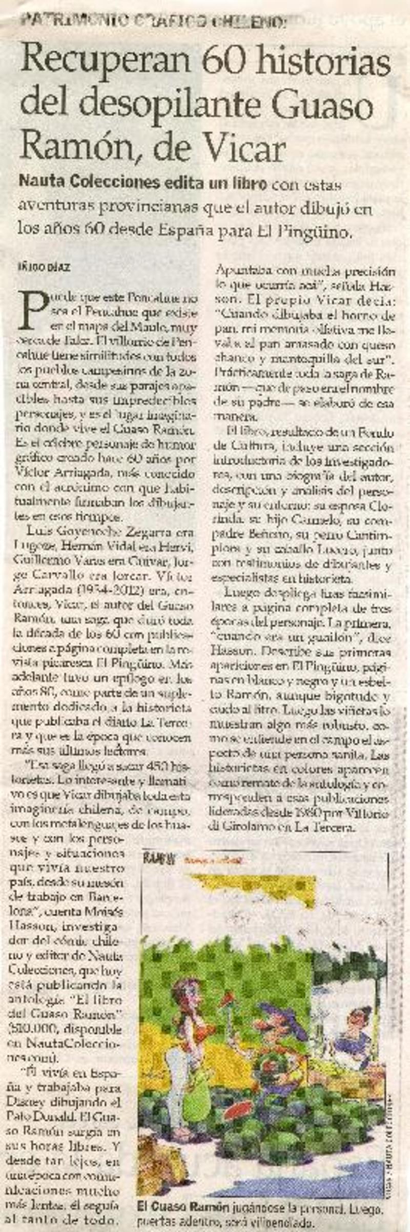 Recuperan 60 historias del desopilante Guaso Ramón, de Vicar [artículo] Iñigo Diaz.
