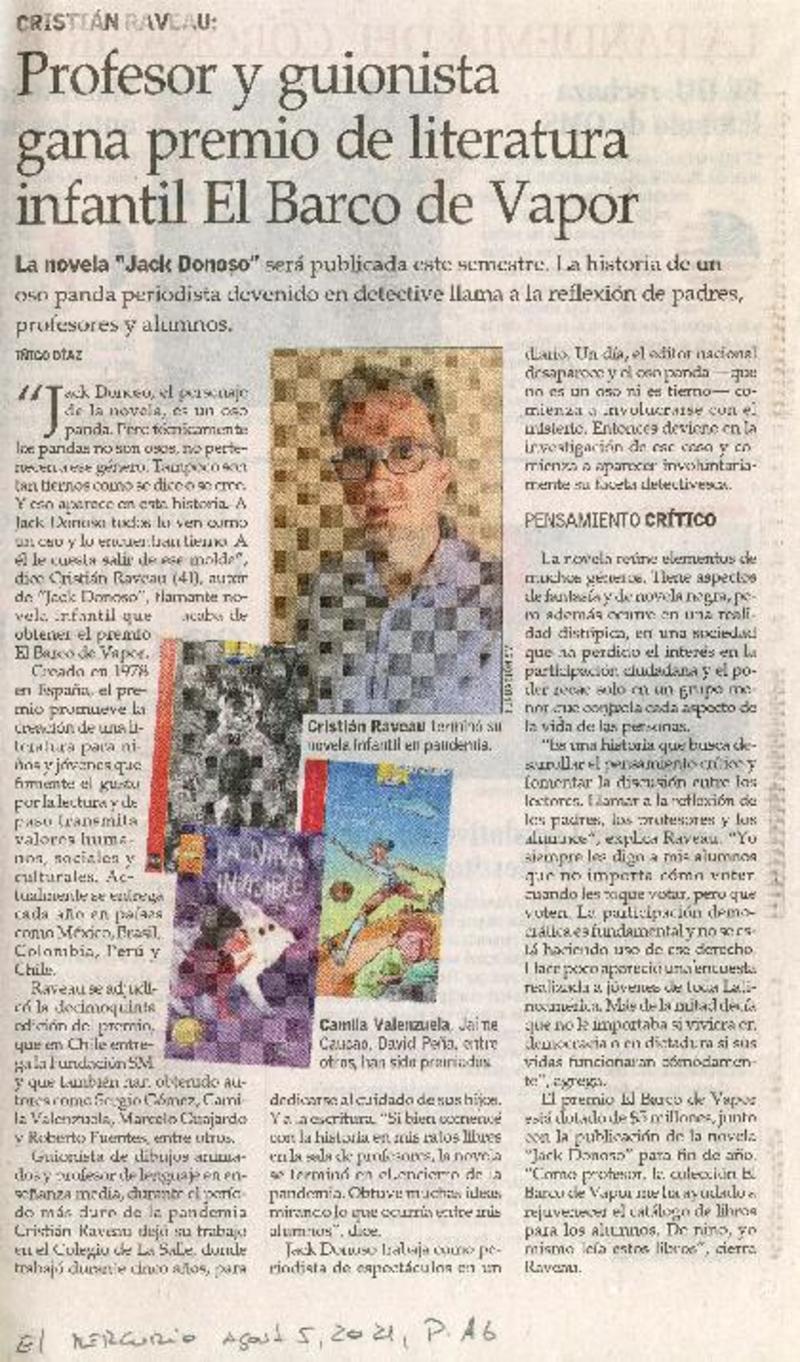 Profesor y guionista gana premio de literatura infantil El Barco de Vapor [artículo] Iñigo Diaz.