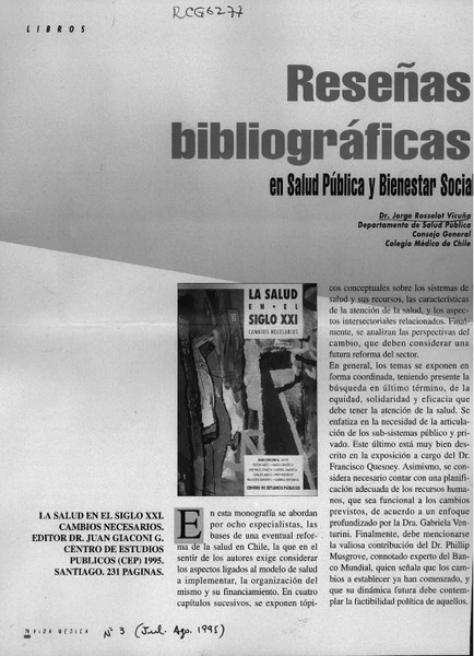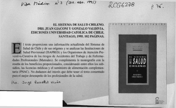 El sistema de salud chileno [artículo] Jorge Rosselot Vicuña.