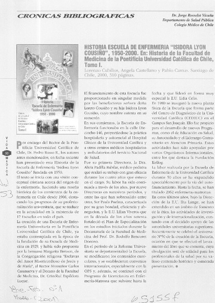 Historia Escuela de Enfermería [artículo] Jorge Rosselot Vicuña