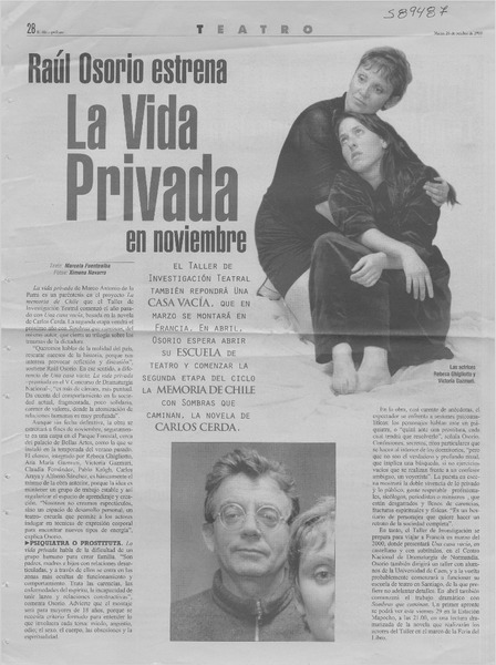 Raúl Osorio estrena la vida privada en noviembre [artículo] Marcela Fuentealba