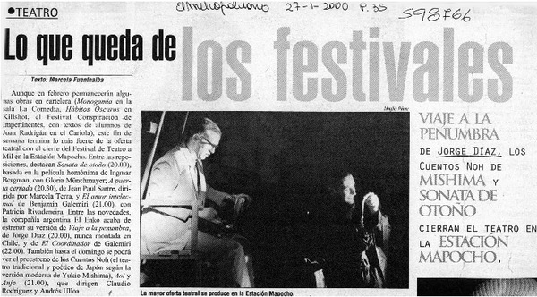 Jorge Díaz vuelve por partida triple a la cartelera [artículo] Marcela Fuentealba.