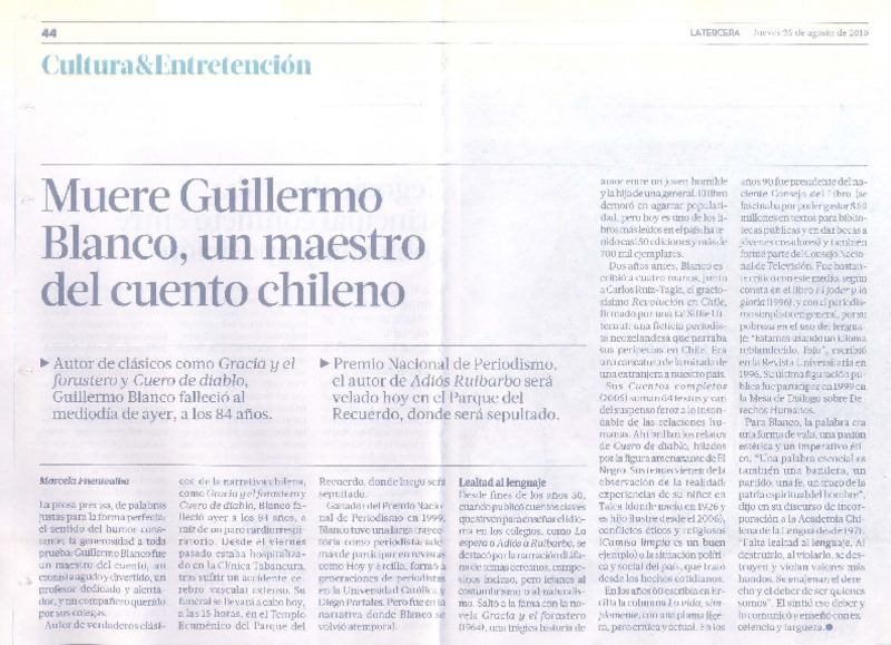 Muere Guillermo Blanco, un maestro del cuento chileno [artículo] Marcela Fuentealba.