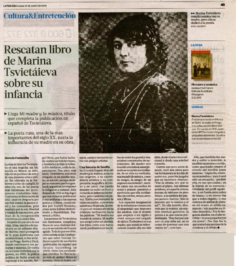 Rescatan libro de Marina Tsvietáieva sobre su infancia [artículo] Marcela Fuentealba