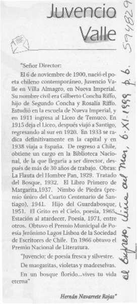 Juvencio Valle [artículo] Hernán Navarrete Rojas
