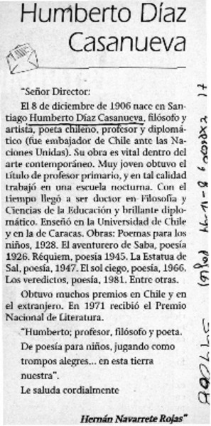 Humberto Díaz Casanueva [artículo] Hernán Navarrete Rojas