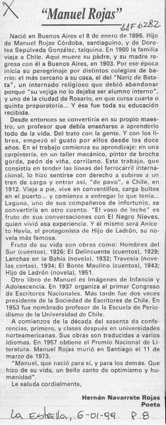 Manuel Rojas [artículo] Hernán Navarrete Rojas.