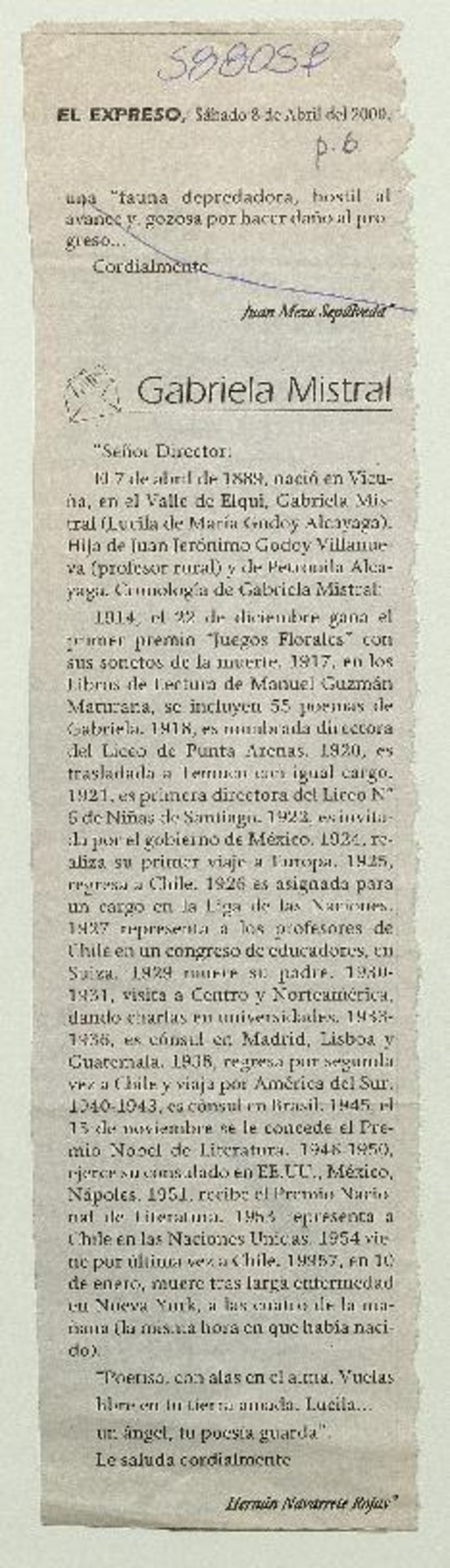Gabriela Mistral [artículo] Hernán Navarrete Rojas