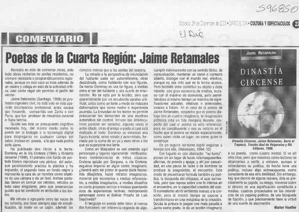 Poetas de la cuarta región, Jaime Retamales [artículo] Walter Hoefler.