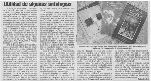 Utilidad de algunas antologías [artículo] Walter Hoefler.