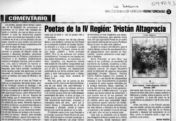 Poetas de la IV región, Tristán Altagracia [artículo] Walter Hoefler.