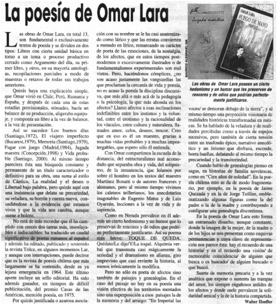 La poesía de Omar Lara [artículo] Walter Hoefler.