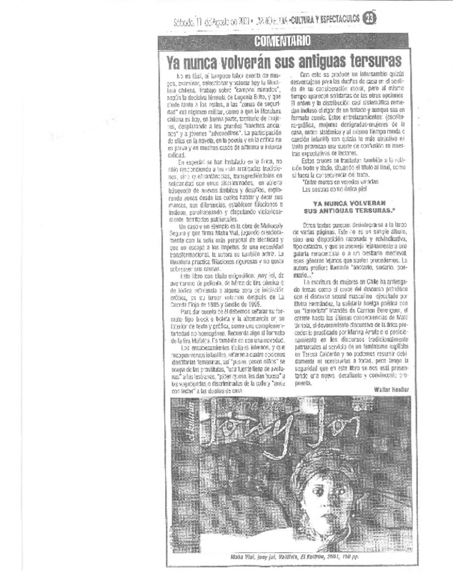 "No sabrás nunca de qué forma" [artículo] Walter Hoefler E.