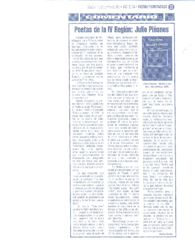 Poetas de la 4 región: Julio Piñones [artículo] Walter Hoefler.