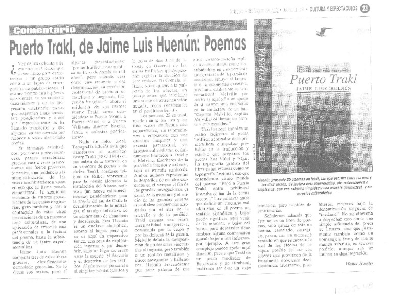 Puerto Trakl, de Jaime Luis Huenún [artículo] Walter Hoefler.