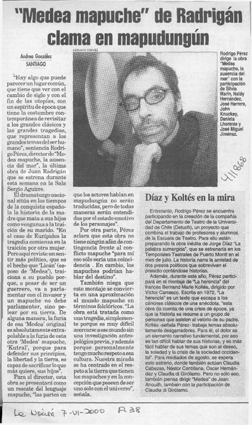 "Medea mapuche" de Radrigán clama en mapudungún [artículo] Andrea González.