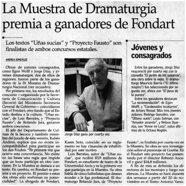 La muestra de dramaturgia premia a ganadores de Fondart [artículo] Andrea González.