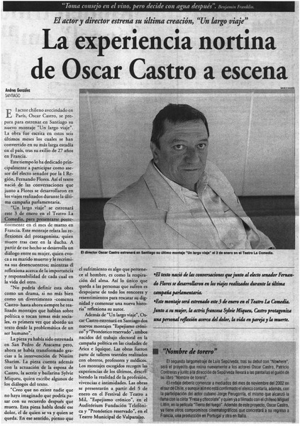 La experiencia nortina de Oscar Castro a escena [artículo] Andrea González.