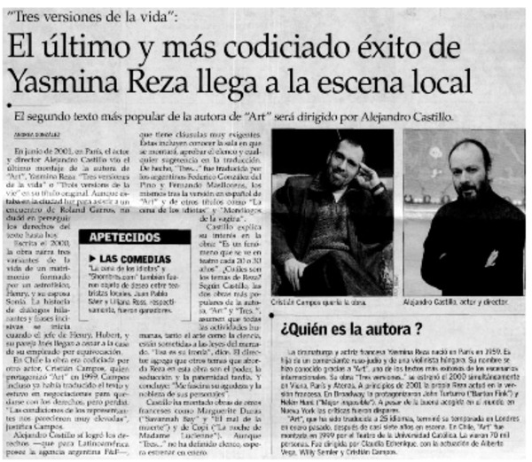 El último y más codiciado éxito de Yasmina Reza llega a la escena local [artículo] Andrea González.