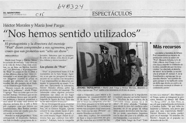 Protagonista de "Prat" vuelve con obra sobre el abuso infantil [artículo] Andrea González.