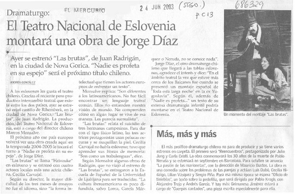 El Teatro Nacional de Eslovenia montará una obra de Jorge Díaz [artículo] Andrea González.