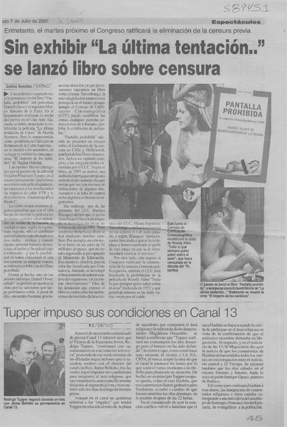 Sin exhibir "La última tentación" se lanzó libro sobre censura [artículo] Andrea González