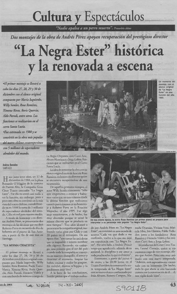 "La Negra Ester" histórica y la renovada a escena [artículo] Andrea González