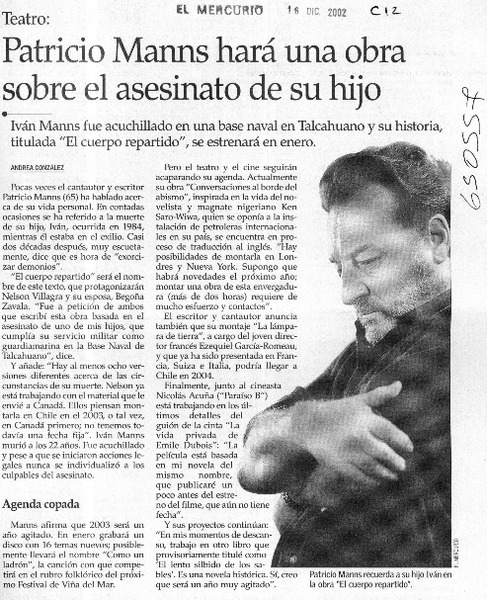 Patricio Manns hará una obra sobre el asesinato de su hijo [artículo] Andrea González