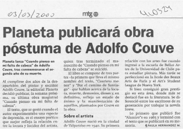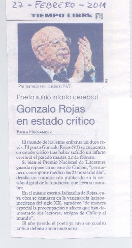 Gonzalo Rojas en estado crítico [artículo] Paula Hernández.