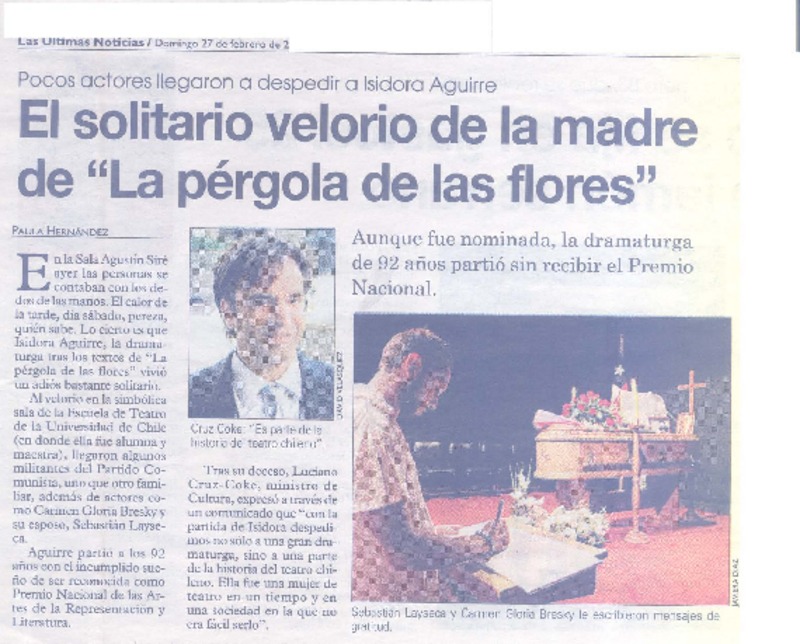 El solitario velorio de la madre de "La pérgola de las flores" [artículo] Paula Hernández.