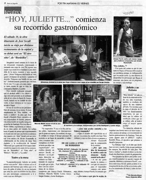"Hoy, Juliette" -- comienza su recorrido gastronómico [artículo] Marcela Rivera