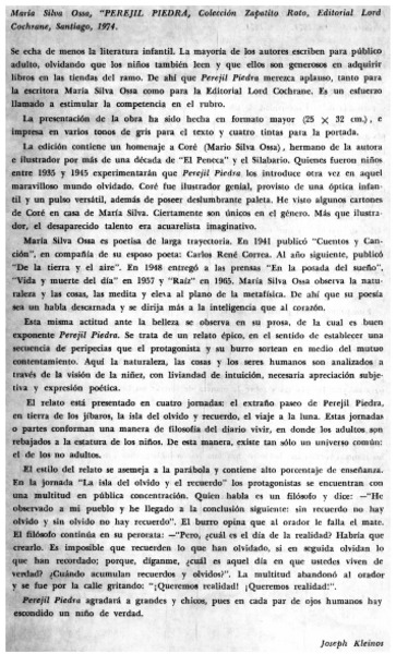 Autoras chilenas - Silva Ossa, María - Perejil piedra