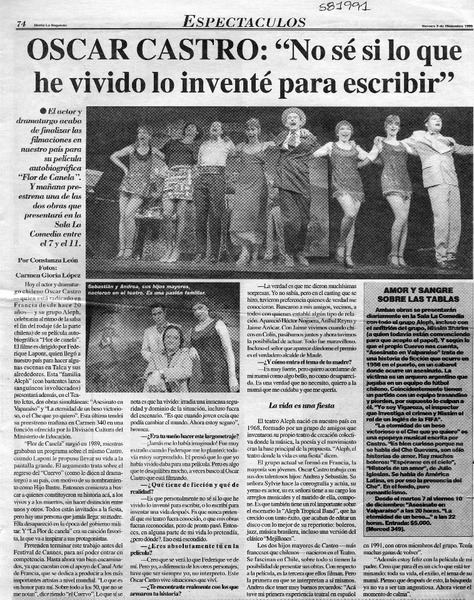 Oscar Castro: "No sé si lo que he vivido lo inventé para escribir" [artículo] Constanza León