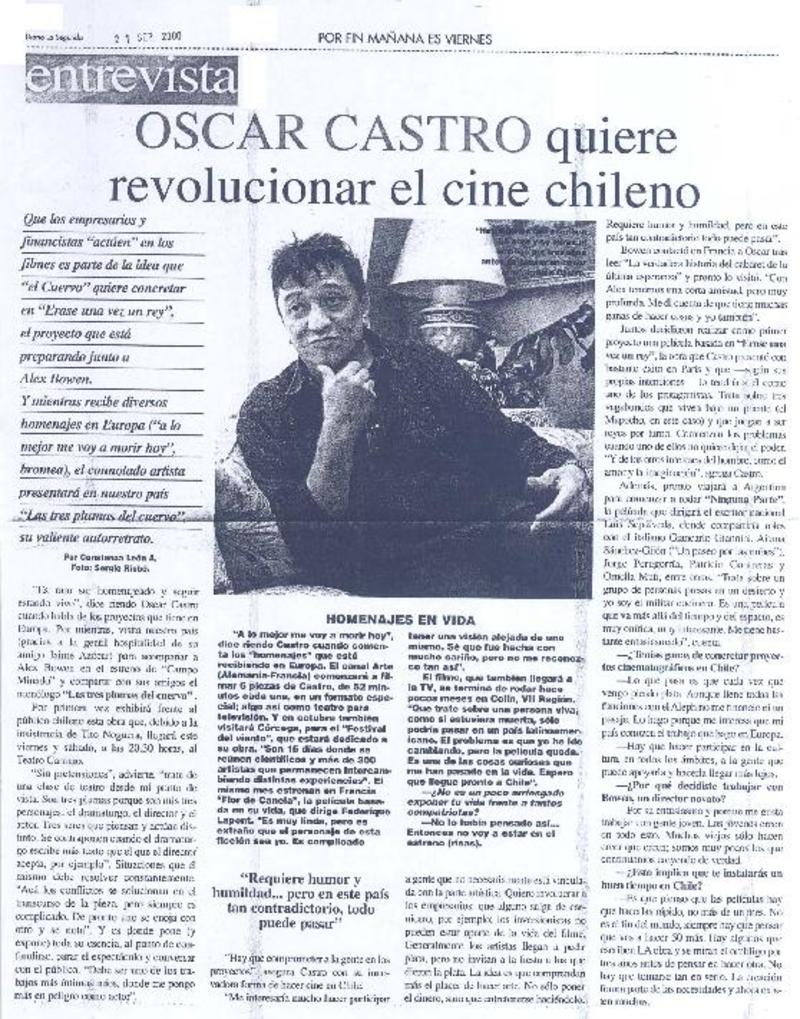 Oscar Castro quiere revolucionar el cine chileno [artículo] Constanza León A.