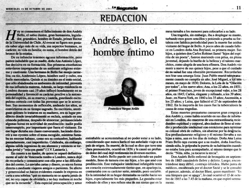 Andrés Bello. [artículo] Francisco Vargas Avilés
