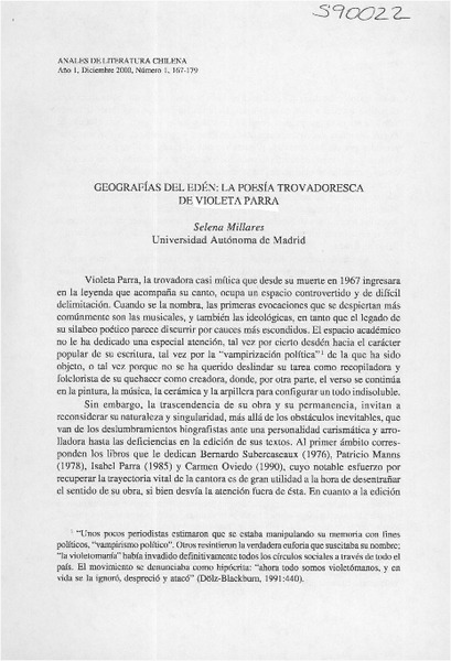 Geografías del Edén, la poesía trovadoresca de Violeta Parra [artículo] Selena Millares