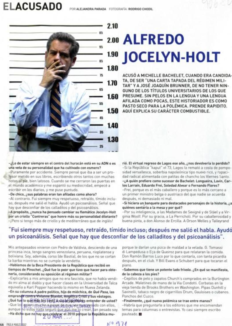 Alfredo Jocelyn-Holt [entrevista] : [artículo] Alejandro Parada.