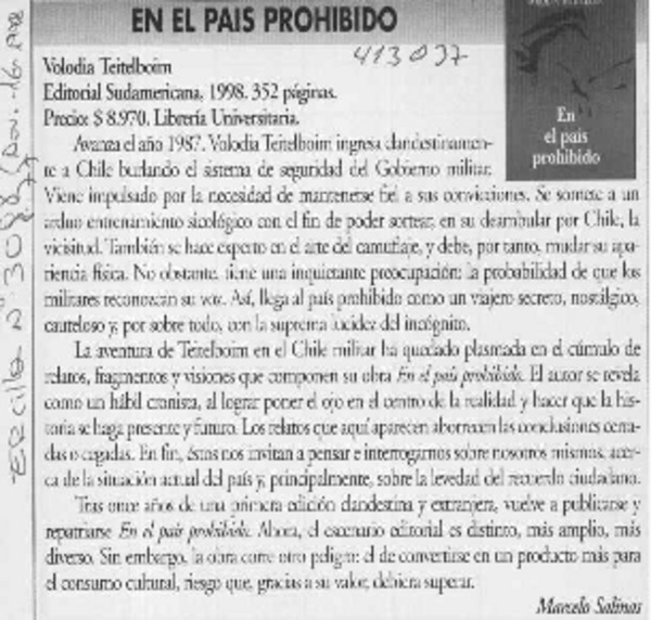 Autores chilenos - Teitelboim, Volodia - En el país prohibido