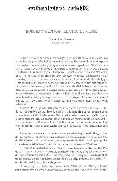 Borges y Whitman, el otro, el mismo [artículo] Tomás Eloy Martínez