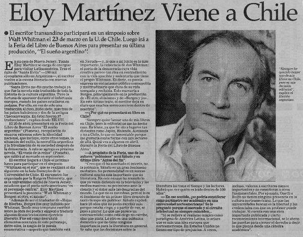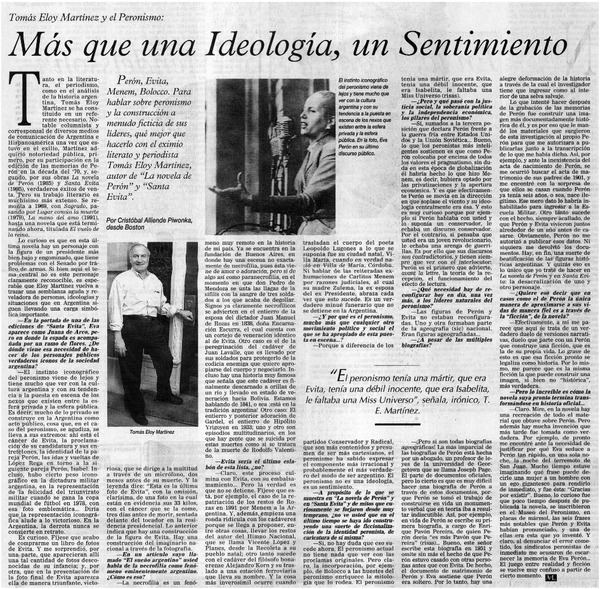 Entrevistas - Autores argentinos - Martínez, Tomás Eloy - Santa Evita - Sueño argentino, El