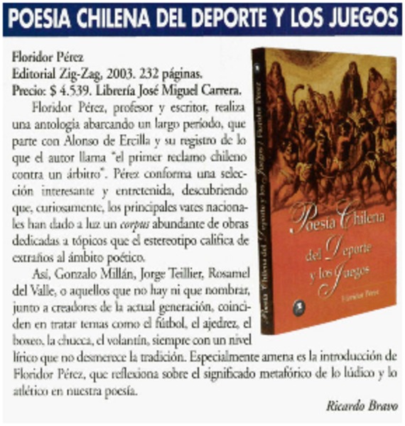 Poesía chilena del deporte y los juegos [artículo] Ricardo Bravo.