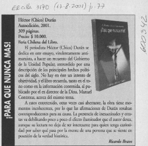Autores chilenos - Durán, Héctor - ¡Para que nunca más!