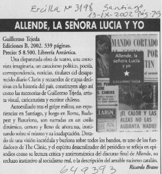 Allende, la señora Lucía y yo [artículo] Ricardo Bravo