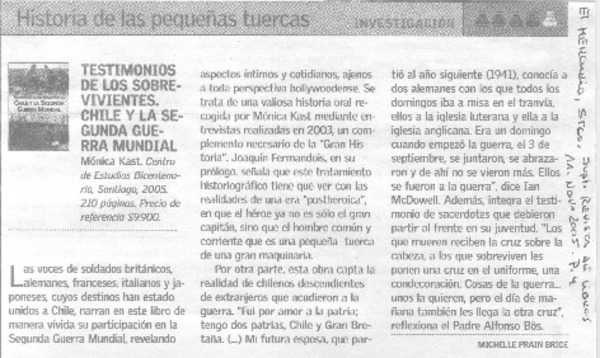 Testimonios de los sobrevivientes. Chile y la segunda guerra mundial [artículo]Michelle Pran Brice.