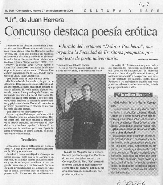 Concurso destaca poesía erótica [artículo] Marcelo Sánchez R.
